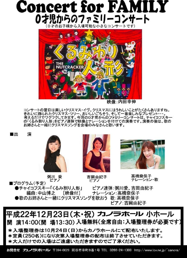 12月23日 0才児からのファミリーコンサート in カノラホール(長野県)