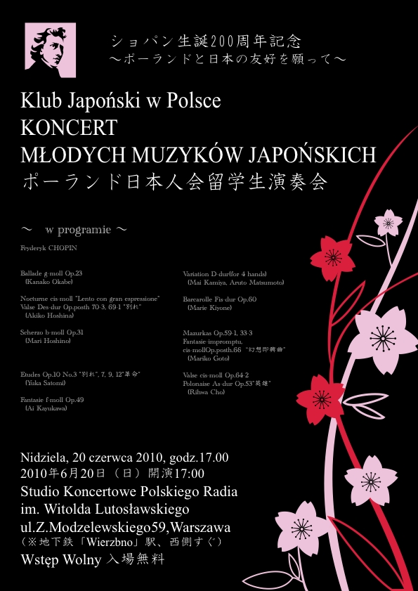 ワルシャワ音楽大学留学生による、ショパン生誕200年を記念したオールショパンプログラムの演奏会です。お近くの方は是非聴きにいらしてください。