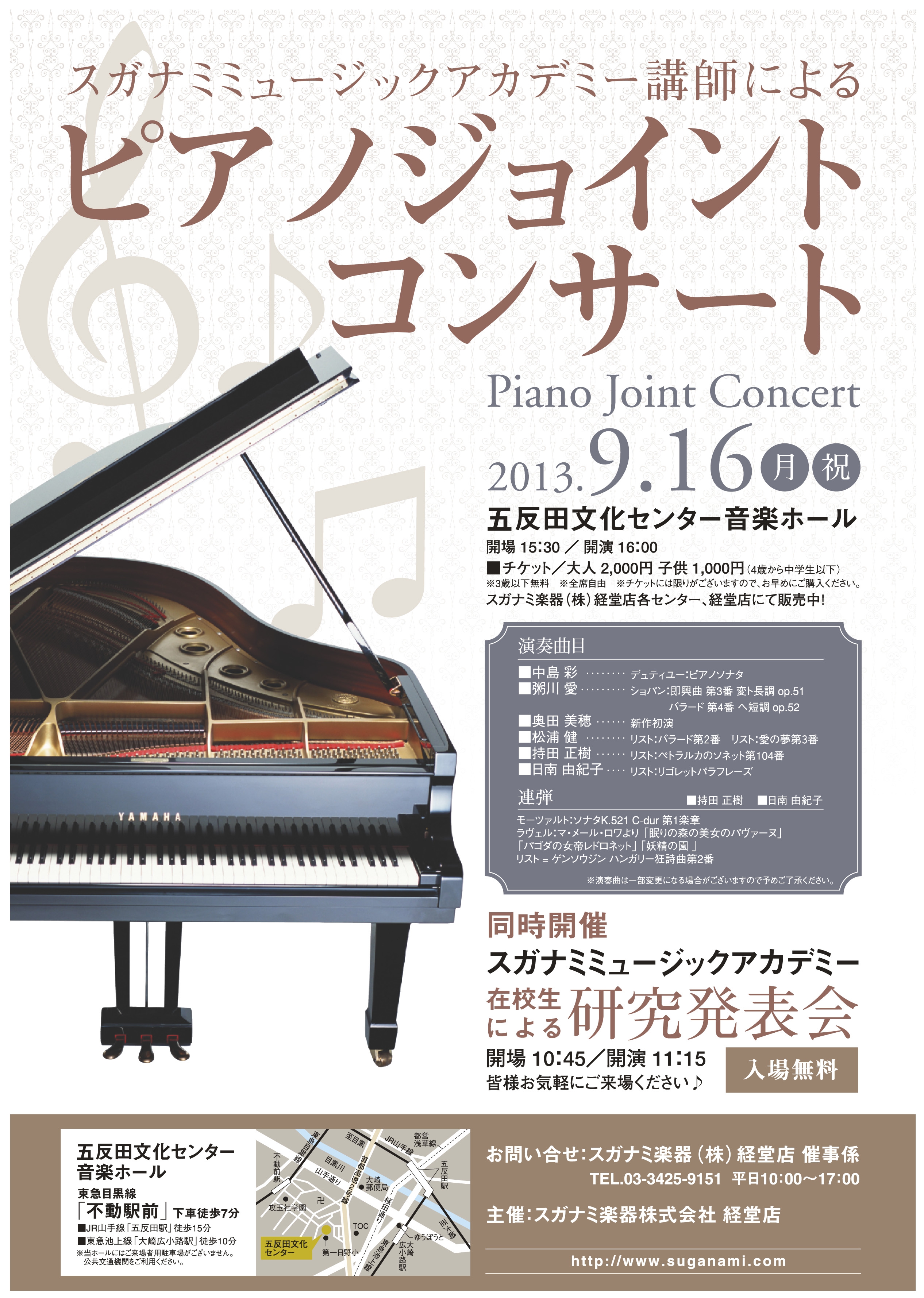また演奏会前の11:15からは無料で一般に開かれた、スガナミミュージックアカデミー在校生による研究発表会も行われます。お近くの方は是非聴きにいらして下さい。