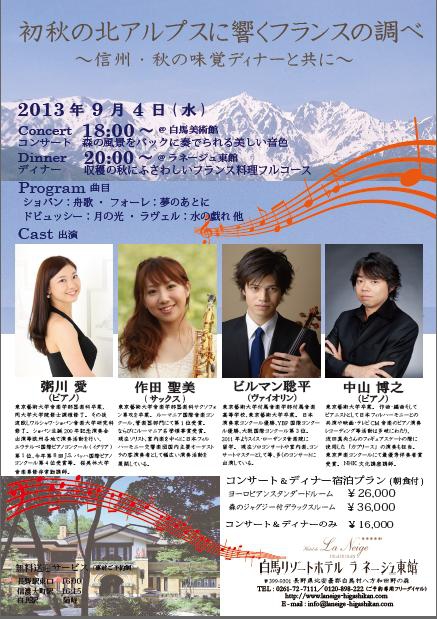 9月4日 初秋の北アルプスに響くフランスの調べ ~信州・秋の味覚ディナーと共に~