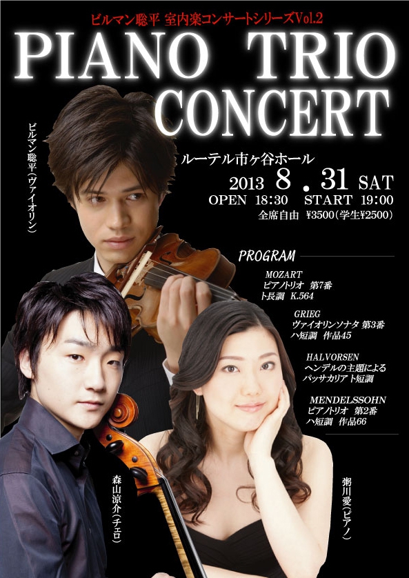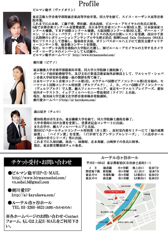 出演 :ビルマン聡平(Vn.)、森山涼介(Vc.)、粥川愛(Pf.)