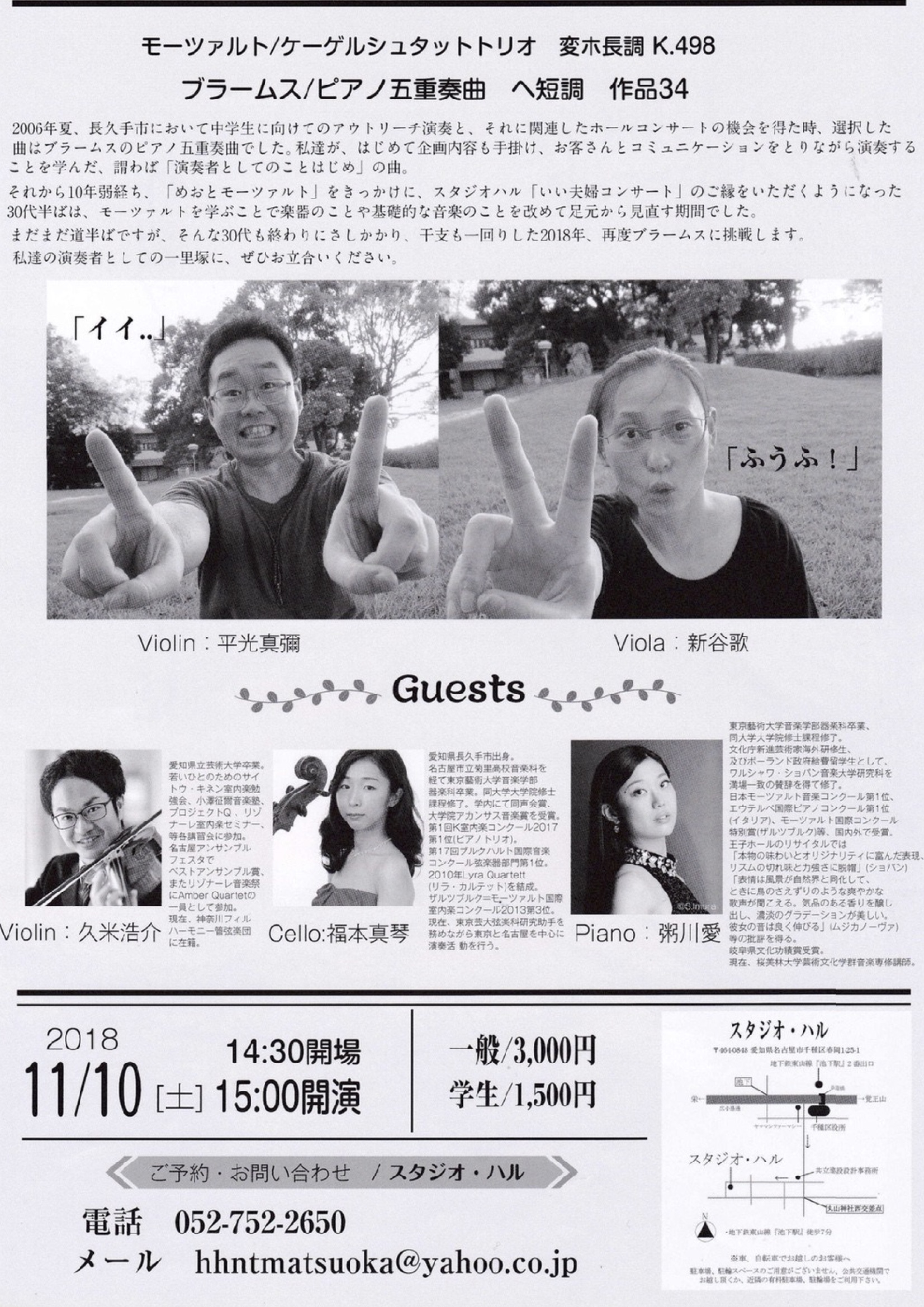 日時 :平成30年11月10日(土)14:30開場、15:00開演