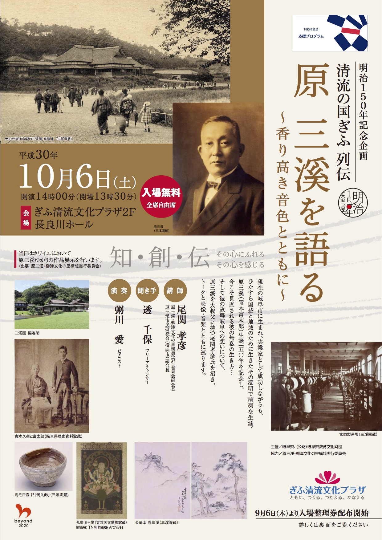 10月6日 “清流の国ぎふ” 列伝「原三溪を語る」〜香り高き音色とともに〜
