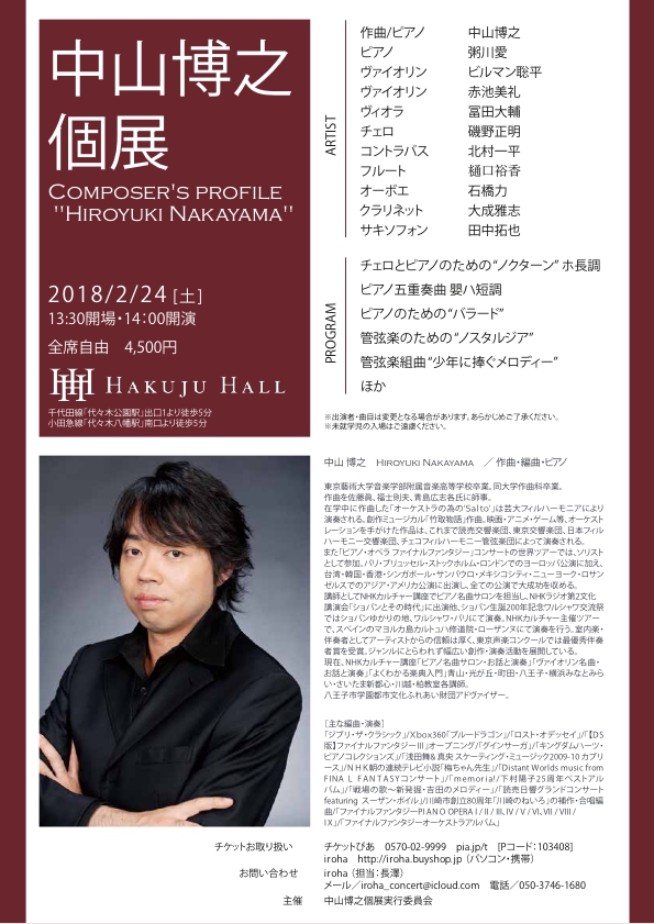 日時 :平成30年2月24日(土)13:30開場、14:00開演