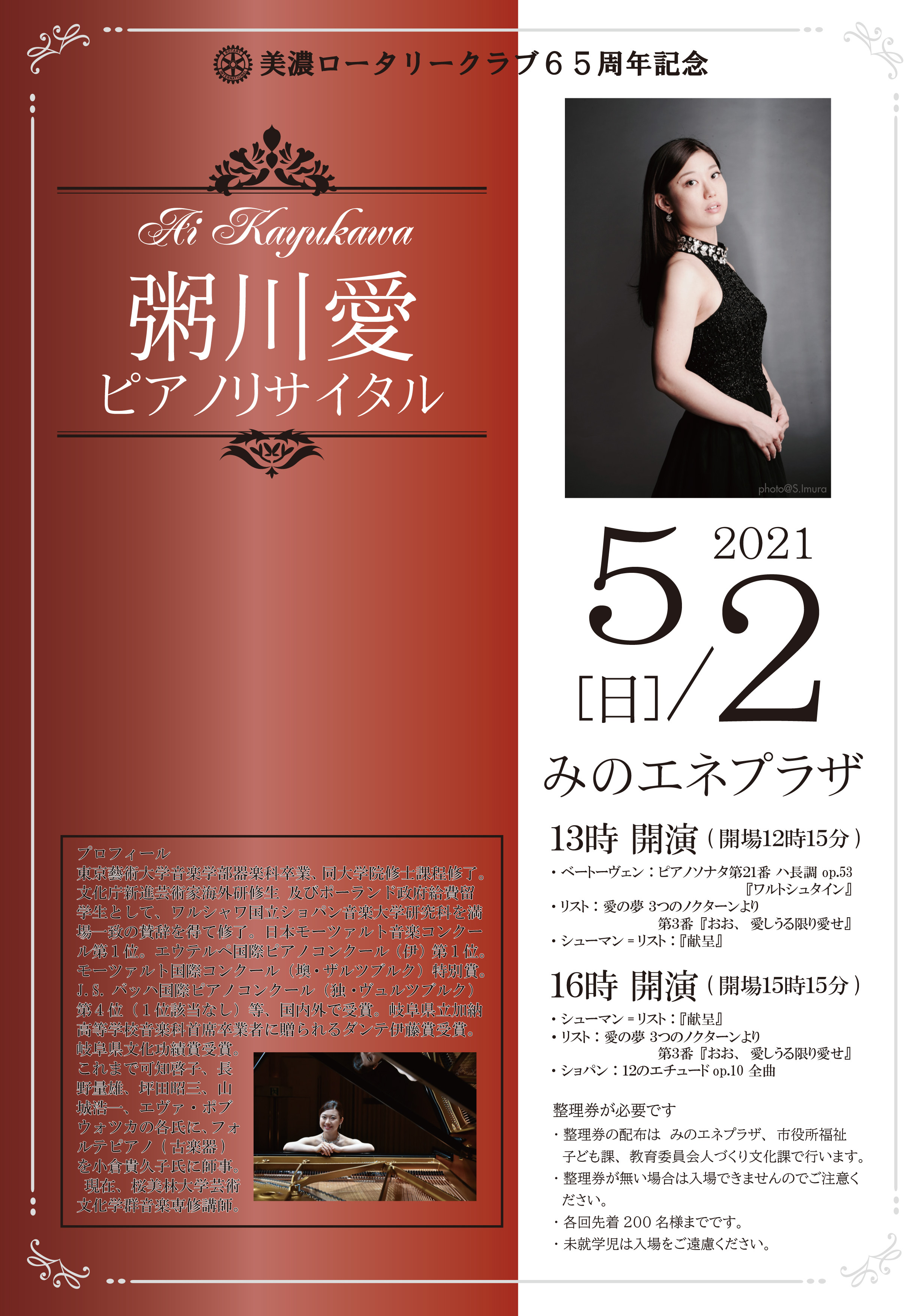 5月2日 粥川愛ピアノリサイタル みのエネプラザこけら落とし(2回公演)