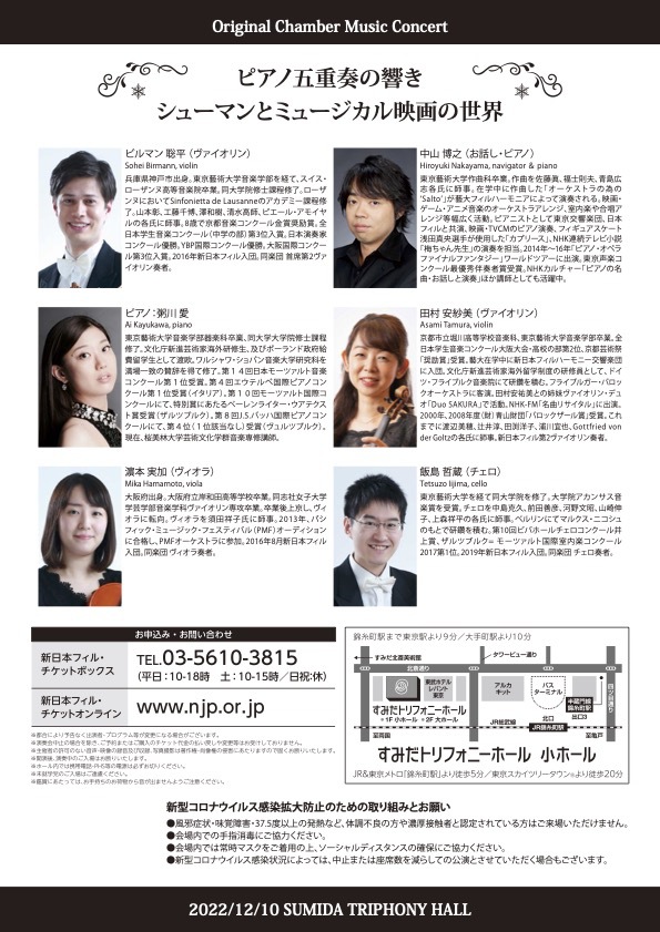 新日本フィルハーモニー交響楽団のメンバーと室内楽で共演させていただきます。