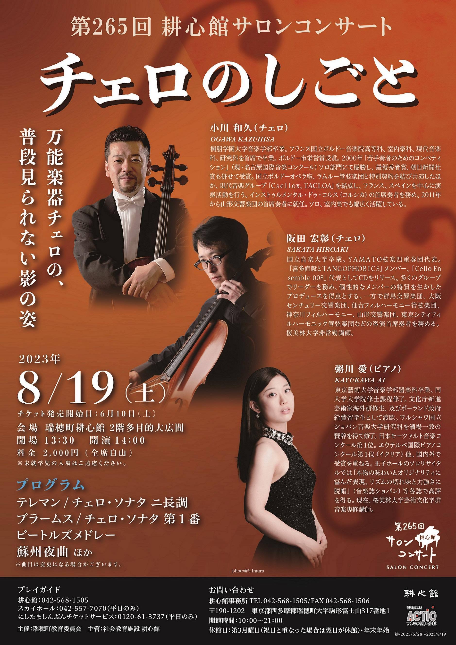 出演 :飯島哲蔵(Vc.)、粥川愛(Pf.)